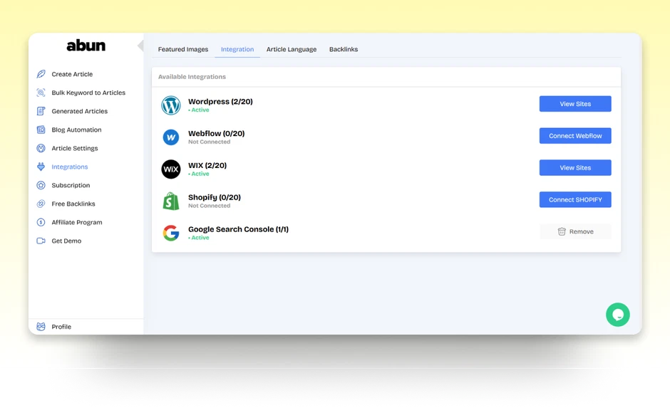 - Integration: Abun seamlessly connects with popular platforms like WordPress, Wix, Webflow, and Shopify, providing a smooth publishing experience.