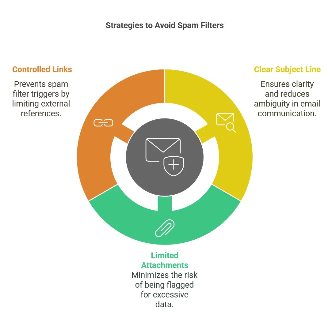 - Attachments: Emails with many attachments can be flagged as spam.