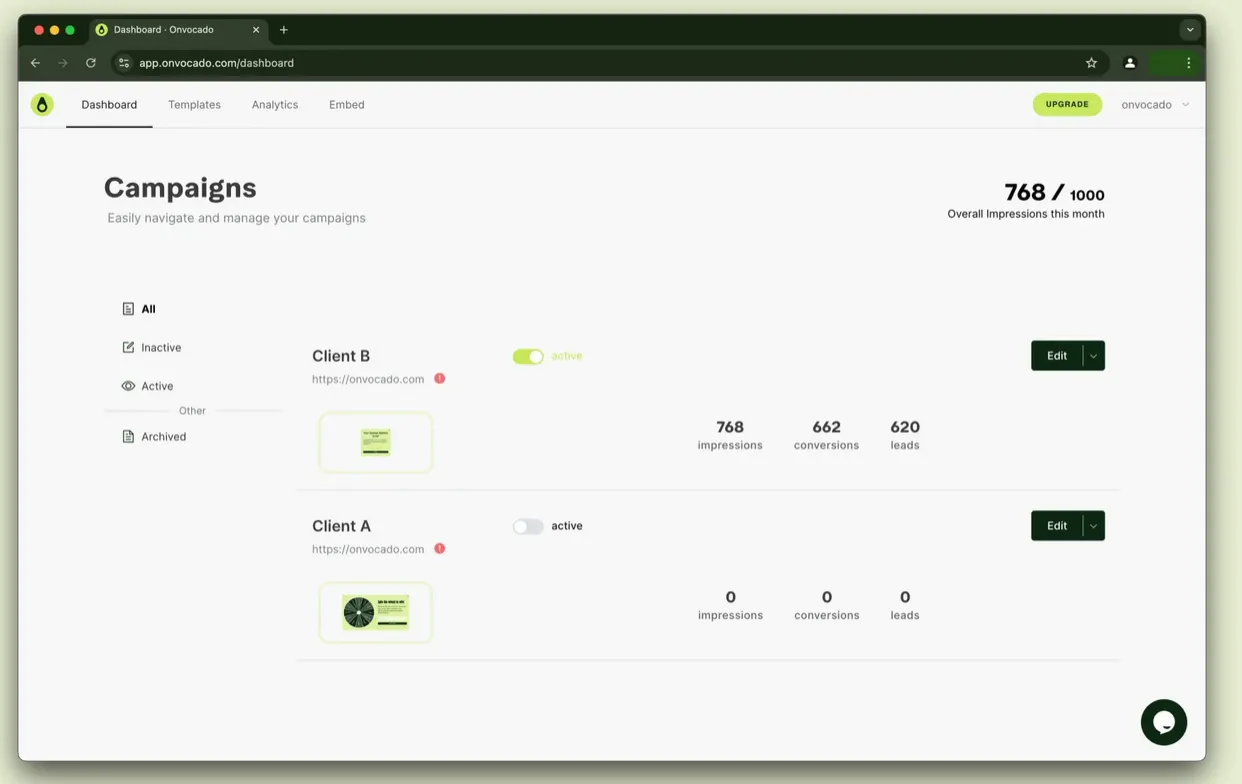 Onvocado also supports A/B testing, provides detailed analytics, and integrates with tools like Mailchimp and WordPress. Learn how Onvocado can improve your website’s performance and engagement. Click here to learn more about Onvocado and start enhancing your website today.